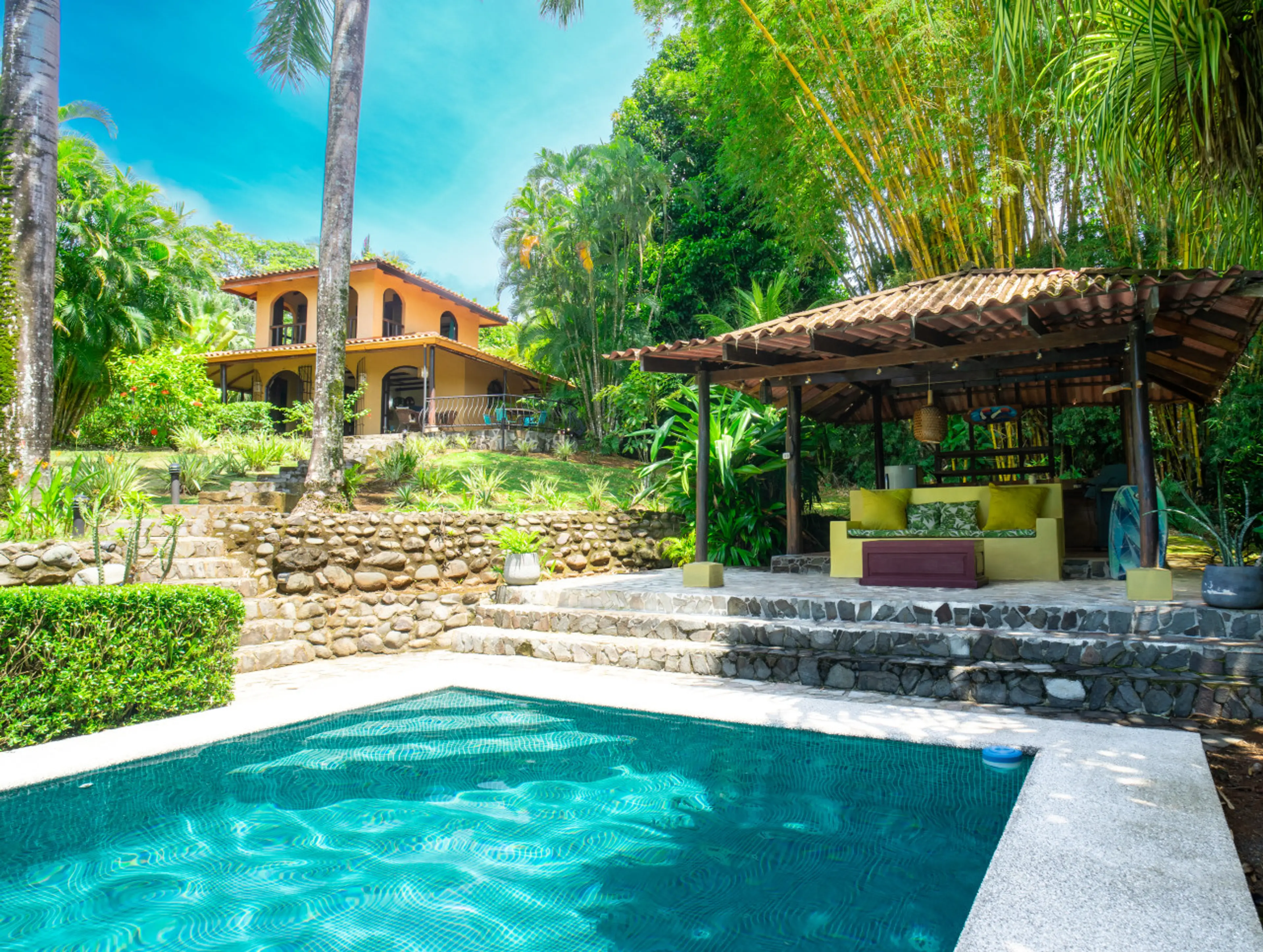Come explore the magnificent beaches of Esterillos! Great surfing, endless tide pools, and breathtaking sunsets abound! Our property is like your own private resort with a massive pool nestled in nature. Set on a large, tree covered lot, it's private, yet close to everything! With a well appointed ...